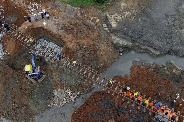 Do ảnh hưởng của bão Kalmaegi cách đây ba ngày, một đoạn đường sắt dài hơn 100 mét nối liền hai tỉnh Đăk Lăk và Gia Lai, đoạn qua khu vực Phước Lãnh – Vân Canh, đã bị xói lở nghiêm trọng. Vết xói sâu tới 9 mét đã khiến phần nền đường bị sạt…