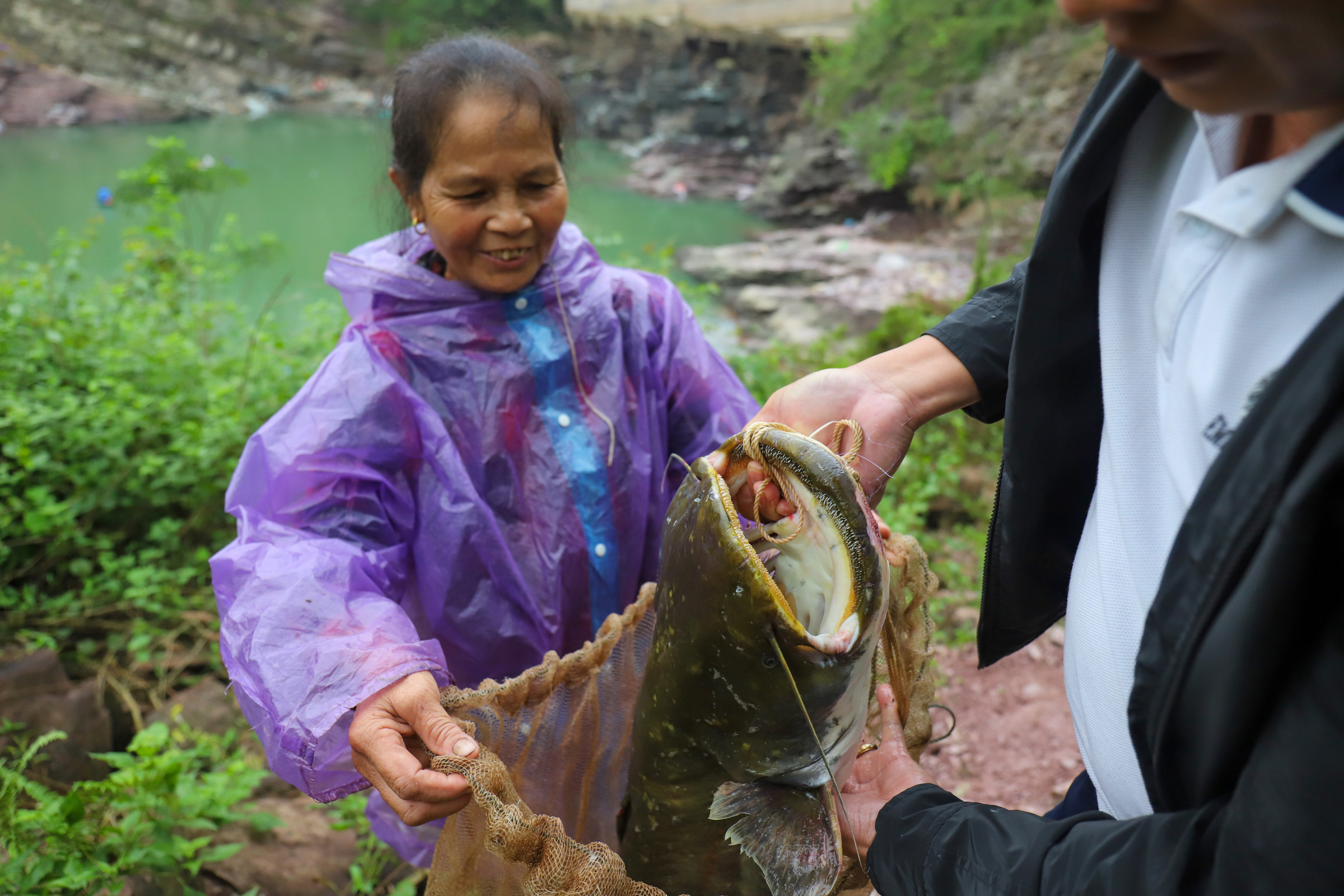 Anh Trần Văn Tạo sau 5 phút giăng bẫy đã bắt được một con cá mè nặng 2 kg. Những ngày gần đây, người dân chủ yếu bắt được cá mè, với trọng lượng mỗi con từ 2-4 kg. Bà Nguyễn Thị Vân và gia đình đã may mắn bắt được một con cá leo nặng gần 11 kg và bán được với giá 3 triệu đồng.