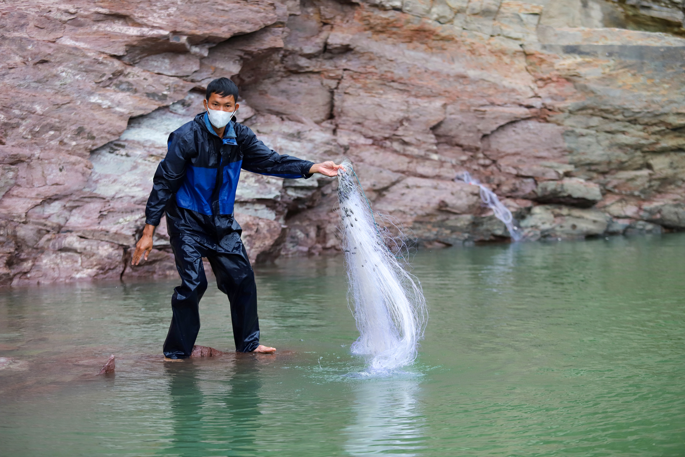 Người dân có nhiều phương pháp đánh bắt khác nhau. Một số người thả lưới ở khu vực gần kè đá, tận dụng việc cá sợ hãi sẽ bơi vào bờ. Anh Trần Văn Thạch cho biết anh đã bắt được gần 100 kg cá mè nhờ cách này. Bên cạnh đó, ông Thân Văn Bắc lại dùng câu để săn cá leo, loại cá có giá trị cao, dù trong buổi sáng ông chỉ bắt được 50 kg cá mè.