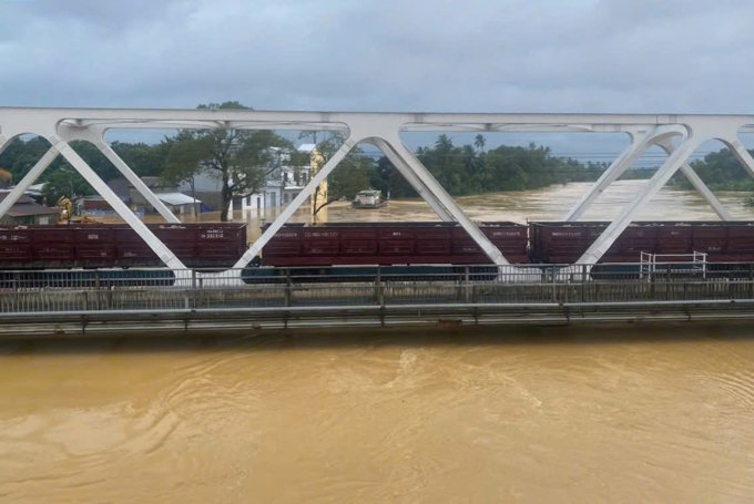 Theo ghi nhận vào sáng ngày 27/10, khoảng 500 mét kè đã bị sạt lở nặng nề. Nhiều mảng bê tông lớn bị sụp đổ ngổn ngang, lớp nhựa đường vỡ vụn tạo thành những hàm ếch sâu và rộng, làm lộ rõ kết cấu bên trong của bờ kè.