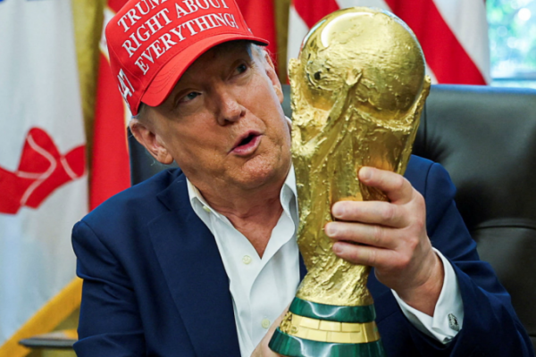 Liên quan đến khả năng thay đổi địa điểm tổ chức các trận đấu World Cup 2026, FIFA khẳng định quyền quyết định cuối cùng thuộc về tổ chức này, không phải bất kỳ nhà lãnh đạo chính trị nào. Donald Trump chụp ảnh cùng cúp vô địch World Cup (Ảnh: Reuters). Ảnh: Internet Tuyên…