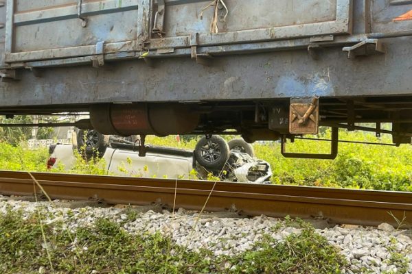 Tai nạn đường sắt: Ôtô bán tải bị tàu hỏa tông văng xuống ruộng